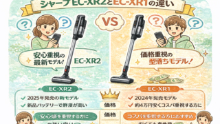 この記事では、シャープのコードレス掃除機「EC-XR2」と「EC-XR1」の違いについて詳しく解説します。見た目や基本性...