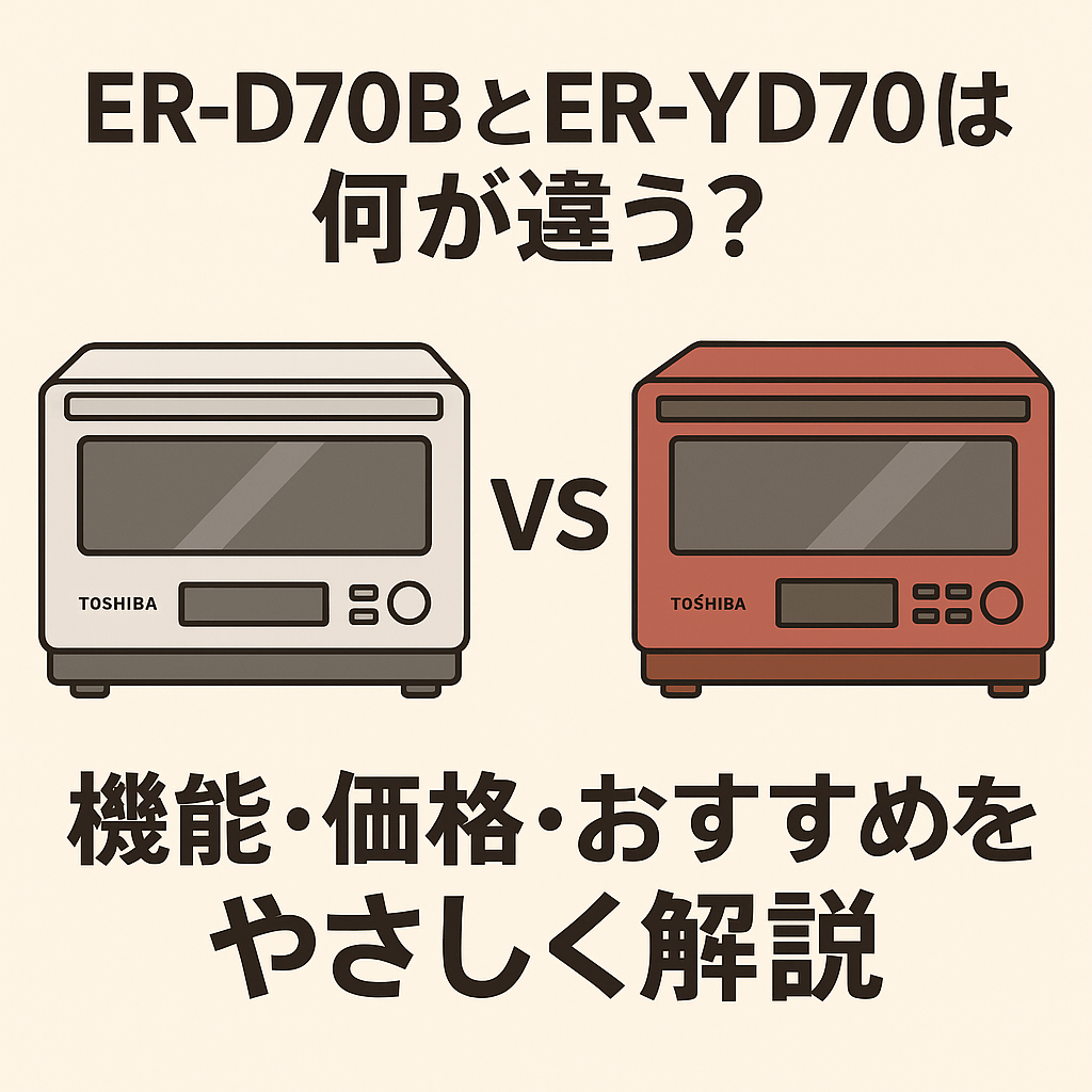 ER-D70BとER-YD70は、どちらも東芝のスチームオーブンレンジとして人気のあるモデルですが、実際に比べてみると使いやすさ・新しさ・価格といった点に違いがあります。