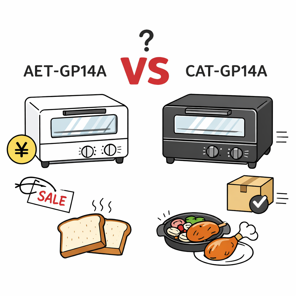 AET-GP14AとCAT-GP14Aは、加熱性能や調理機能に大きな差はありません。