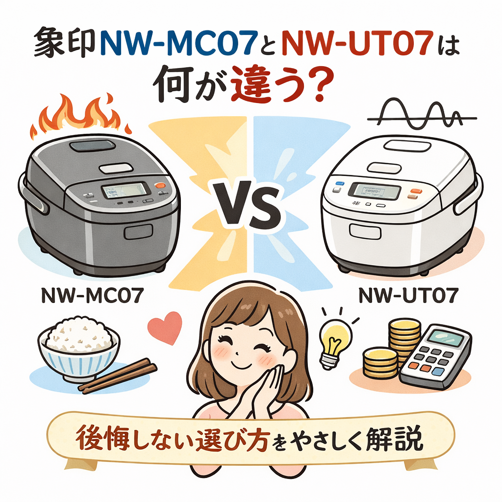 一方で、ご飯そのものの甘みや香り、粒立ちまでしっかり味わいたい場合は、NW-UT07のほうが満足度は高くなりやすいです。