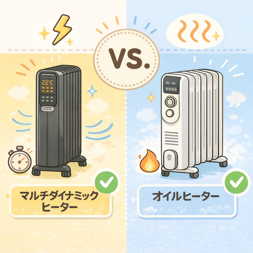 どちらのヒーターが自分に合うかは、日常の使い方や部屋のサイズによります。例えば、寒い朝にすぐ暖かくしたいならマルチダイナミックヒーターの方が適しています。