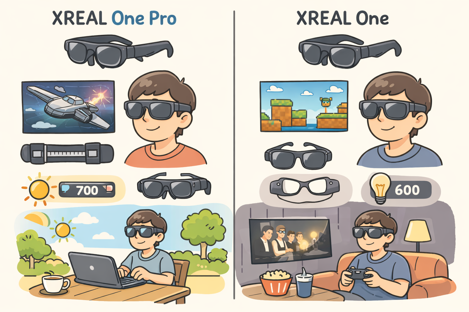 XREAL One ProとXREAL One、どちらを選ぶかは、主に使用環境と個々の好みによるところが大きいです。